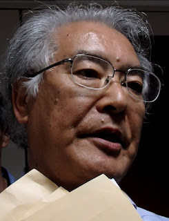 | 取材妨害をする森一敏・金沢市議(社民党) |