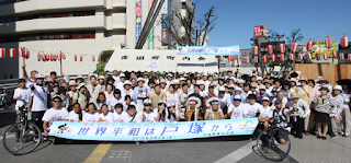 PEACE ROADのHPには日本各地で統一教会信者が集結して行なう自転車リレーの様子がUPされている。