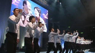 | 未来フェスで教祖夫妻への忠誠を誓う2世信者たち(PeaceTVより) |